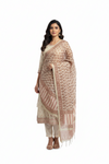 This block Kota print dupatta is a graceful adornment, adding a touch of elegance to any outfit. Crafted from a soft blend of cotton, silk, and metallic thread, it offers comfort and convenience. The vibrant colors exude a summery vibe, making it an ideal accessory for the summer season. The traditional block Kota print adds a cultural and artistic flair, making this dupatta a fine and stylish choice.