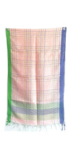 Blue Pink Cheks Pure Linen Soft Stole Size 55 X 190 Cm