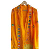 Handcrafted Yellow Dupatta with Colorful Embroidery and Golden Border
