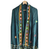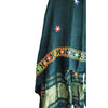 Handcrafted Dark Green Dupatta with Colorful Embroidery and Golden Border