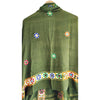 Handcrafted Dark Green Dupatta with Colorful Embroidery and Golden Border